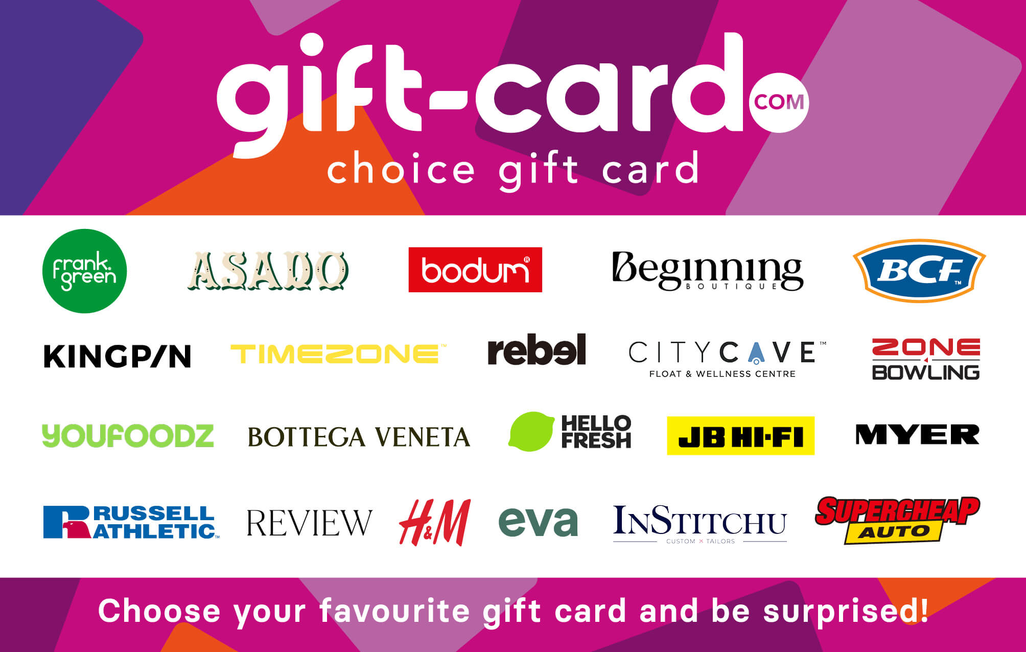 Treat someone to dozens of popular online shops and retail chains with our Choice Gift Card
